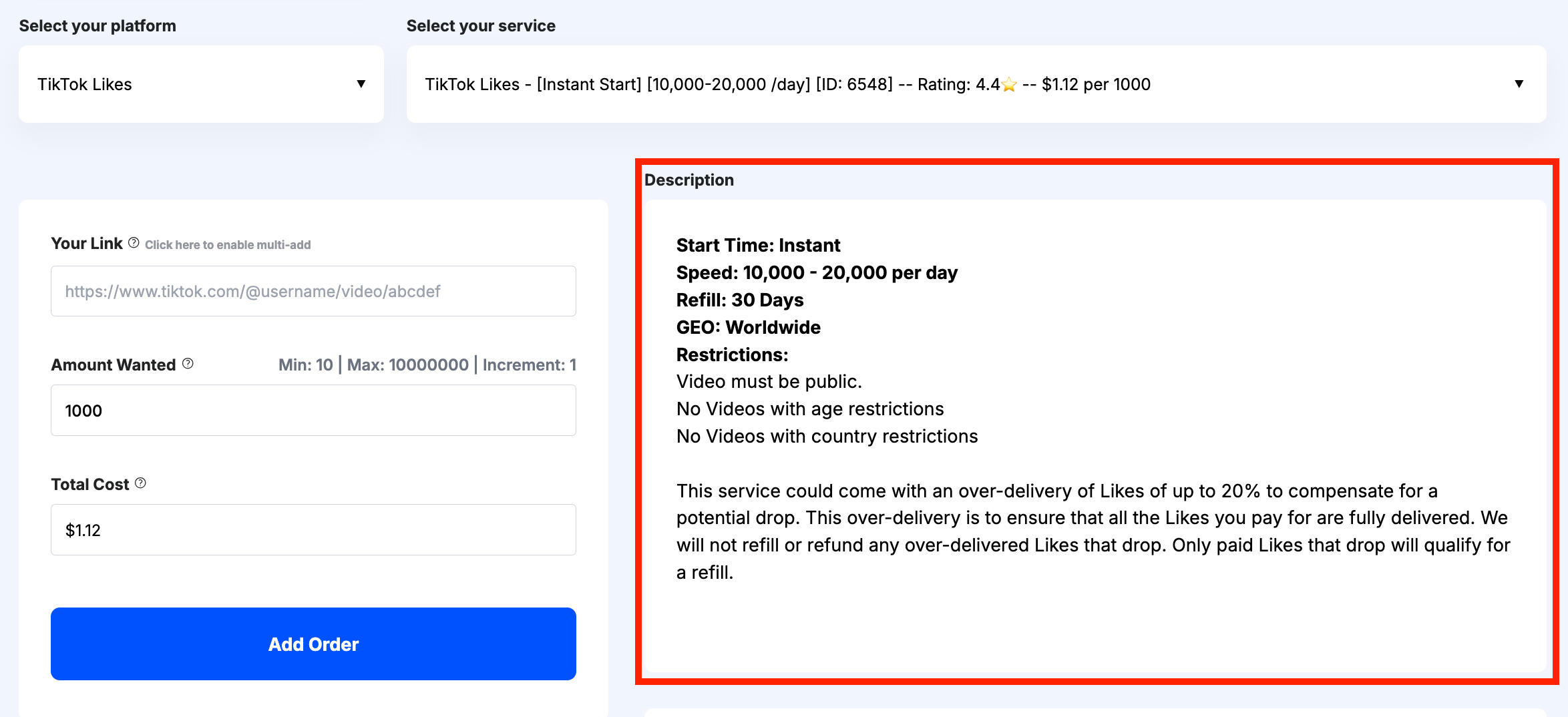 At QQTube, you can find all of these details clearly laid out for you in the service description of each service.