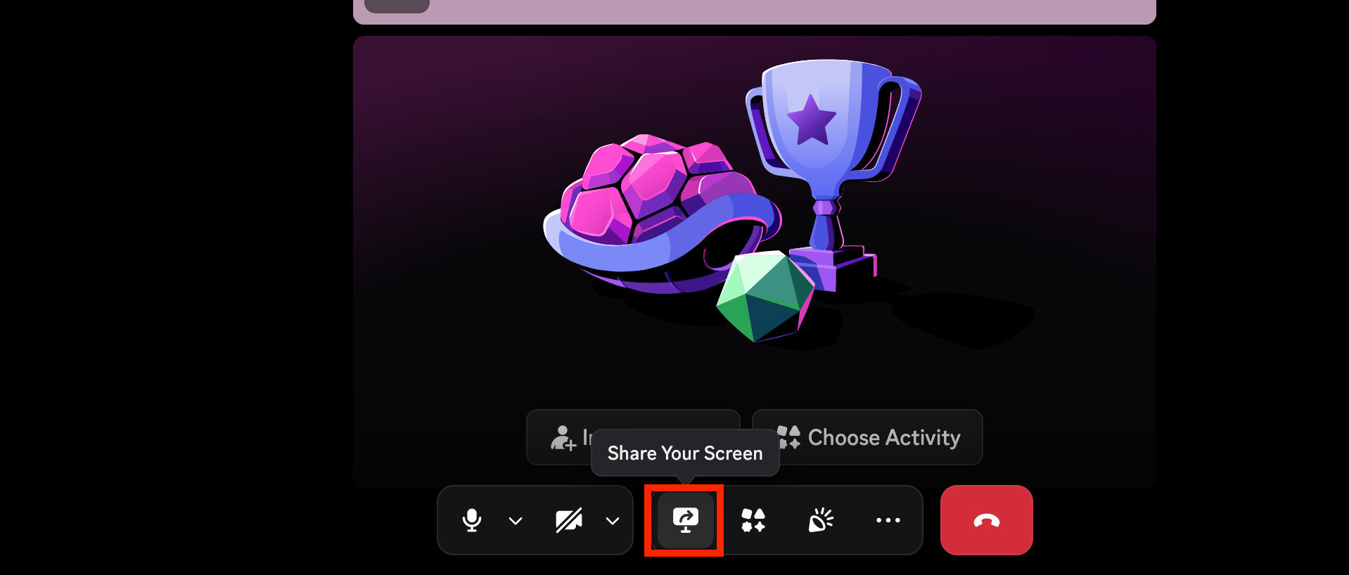 From the voice chat screen, hover over the bottom menu and click Share Your Screen to start streaming.