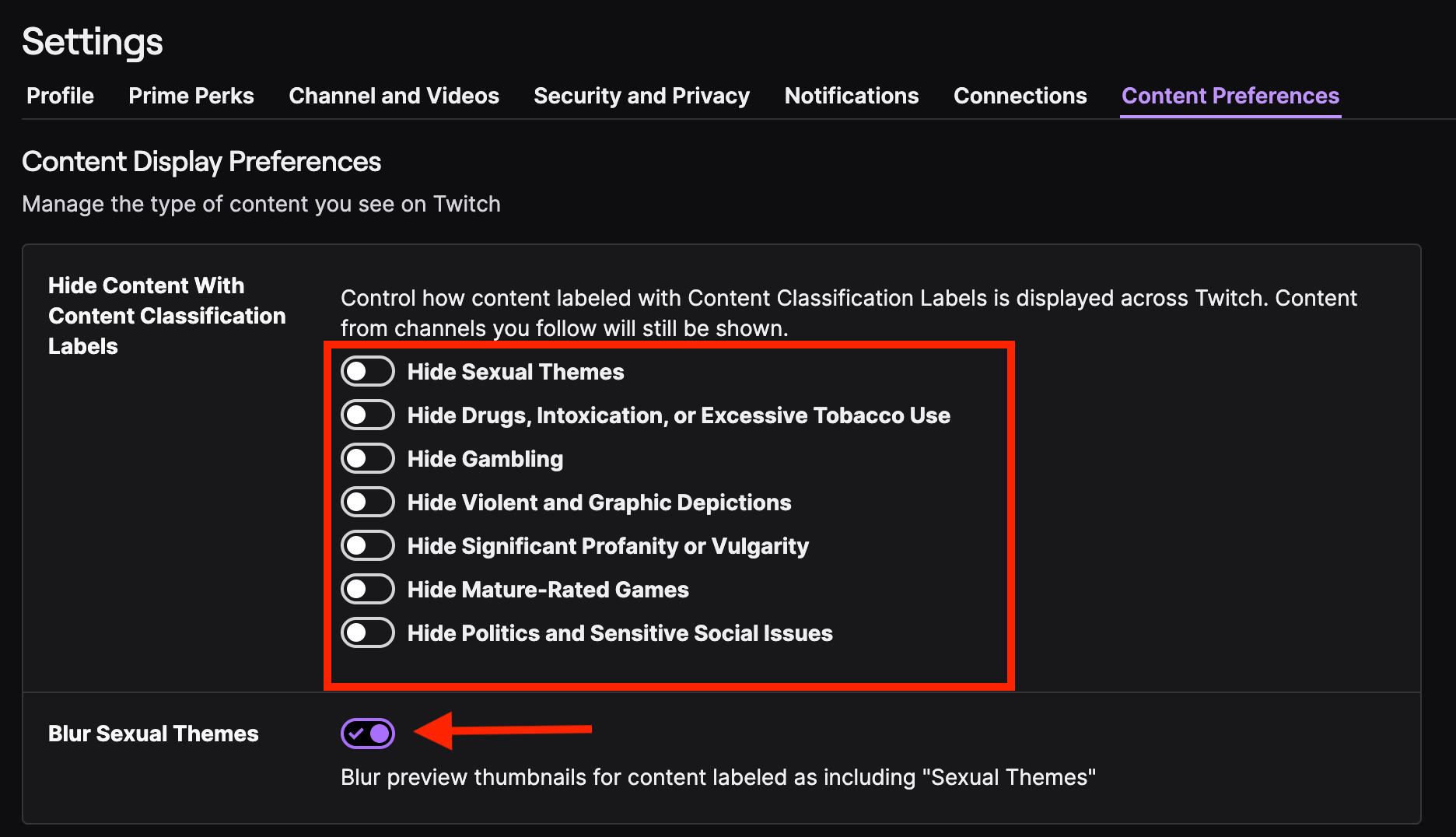 Finally, while this isn’t directly related to privacy you can also adjust the types of content you see on Twitch for your own sanity.