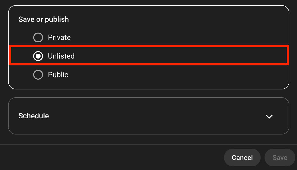 Under Visibility, click Unlisted (if you want to share the stream with friends) or Private (if you don’t want to share it with anyone).