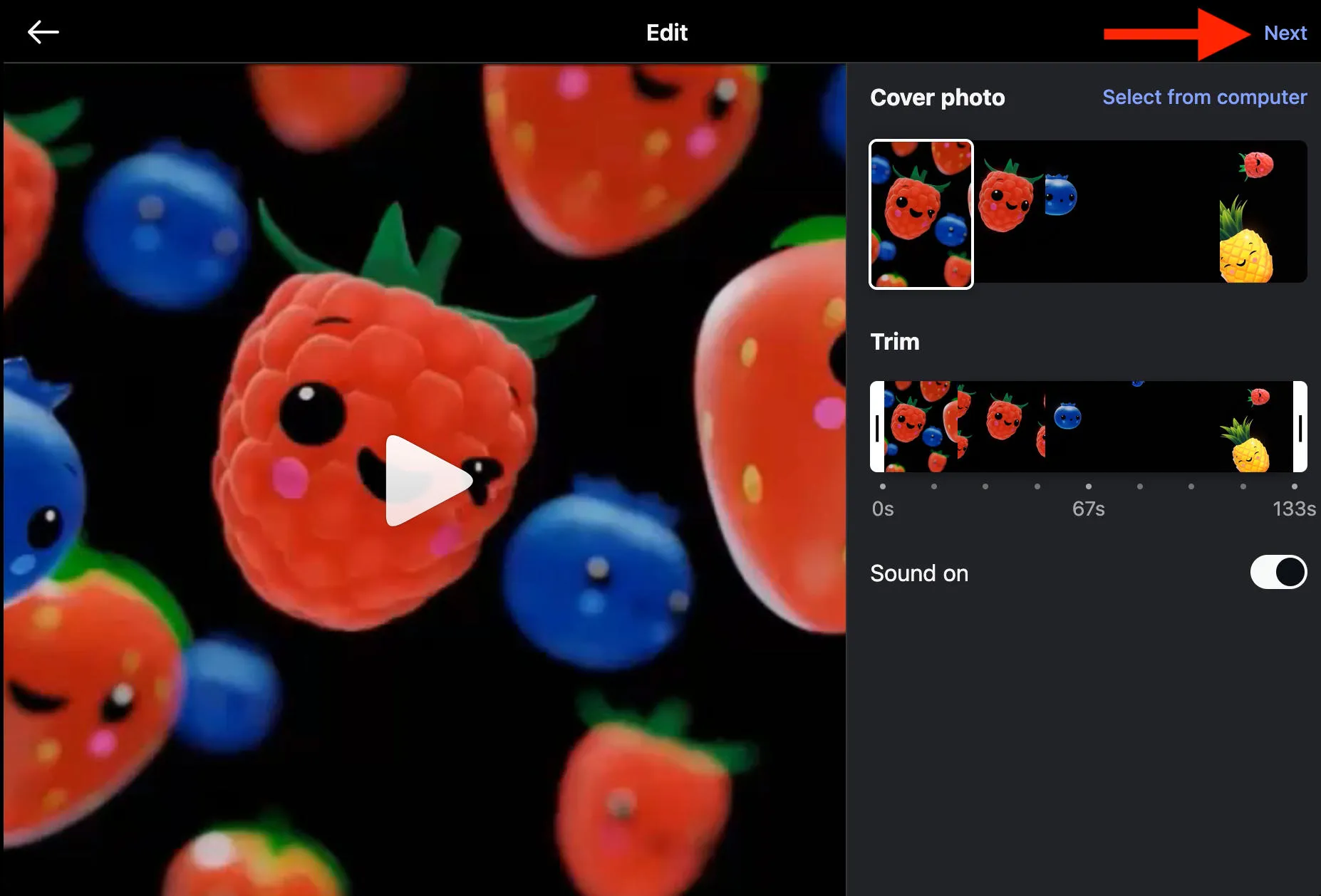 From here, make any edits to your video, then tap the purple arrow on the top right corner.