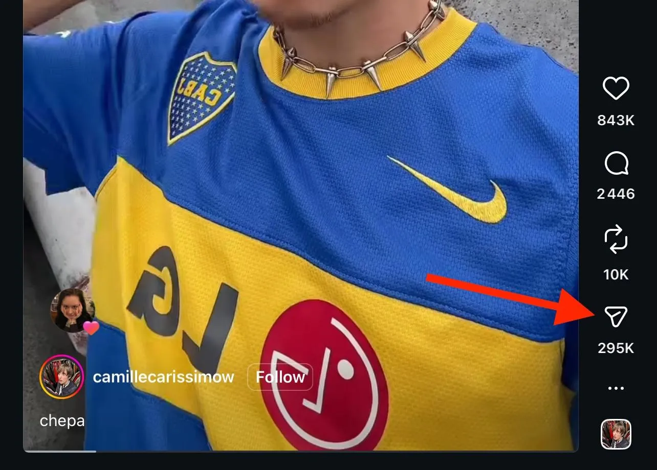 To share a Reel or photo post to your Story, tap the paper airplane icon on the bottom right.