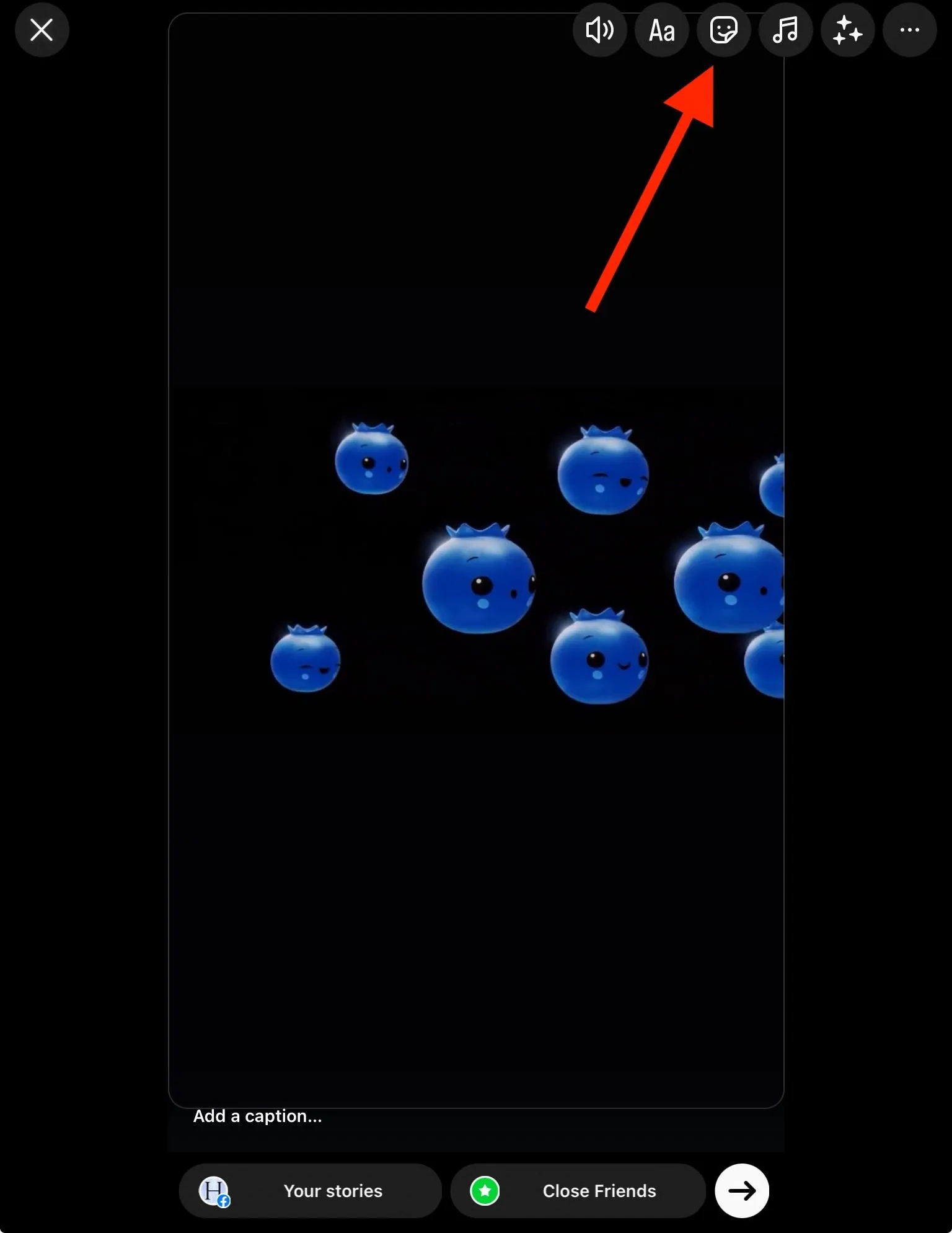 If you upload a video then tap the Sticker icon, you’ll only be able to add additional photos, not videos.