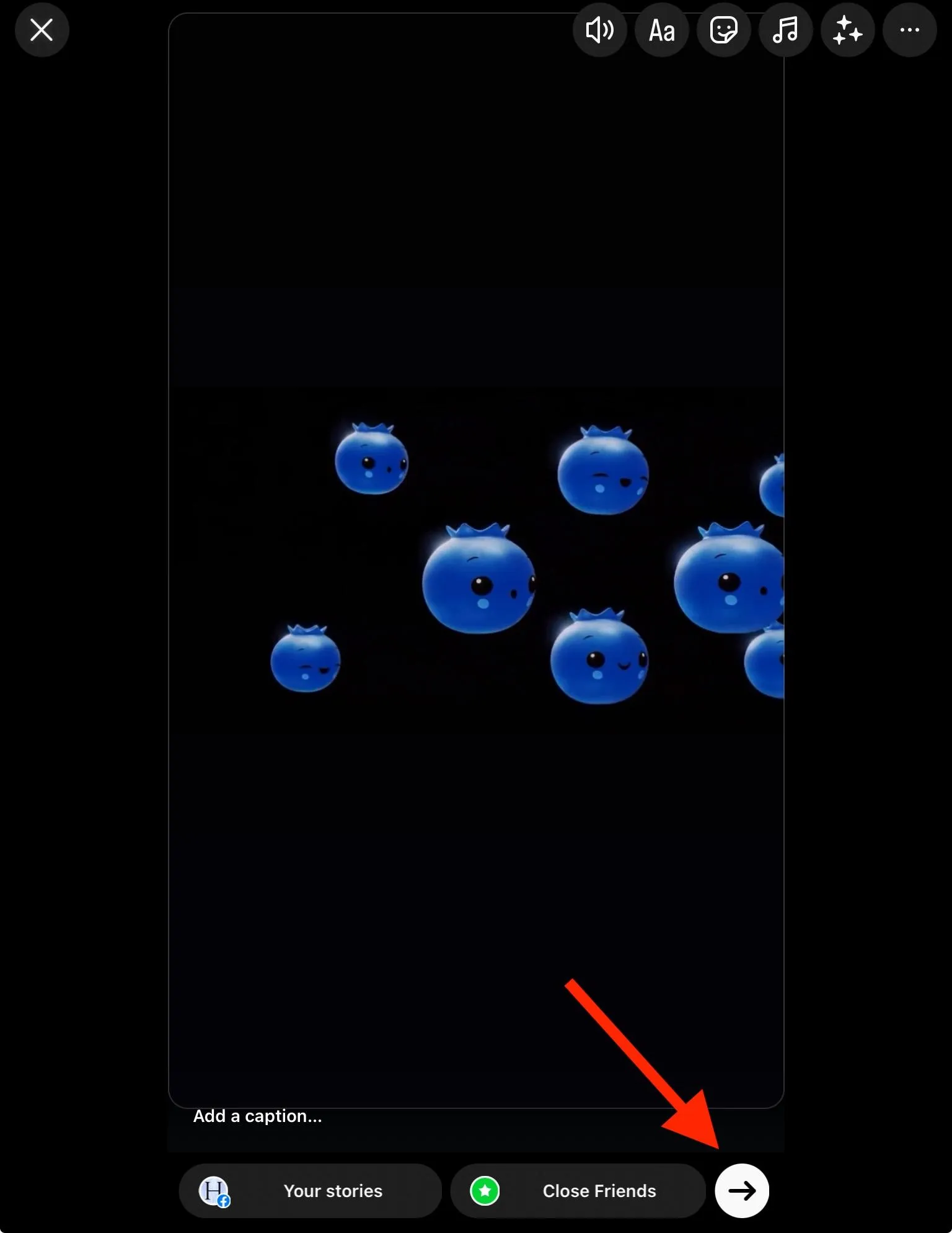 Make any edits, add stickers, audio, or tag users then tap the arrow on the bottom right to post your Story.
