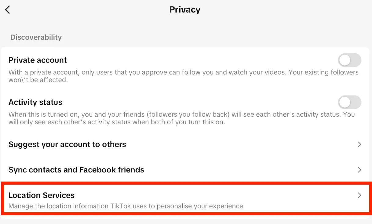 TikTok location option not showing