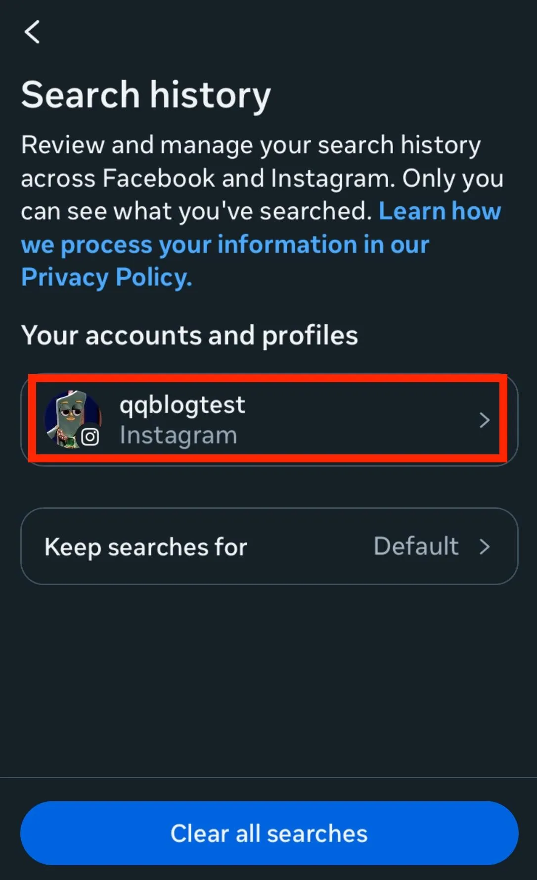 If you want to remove a single search entry, tap the account to view your full search history then tap the X that appears next to your recent search.