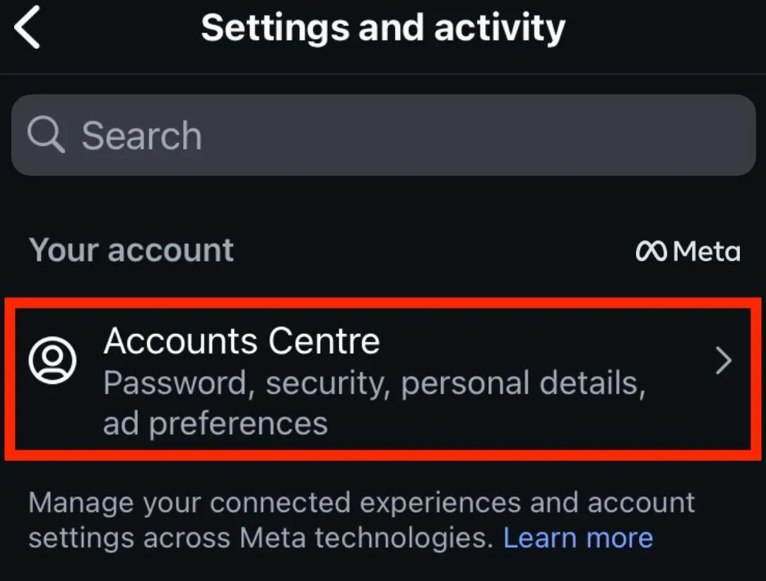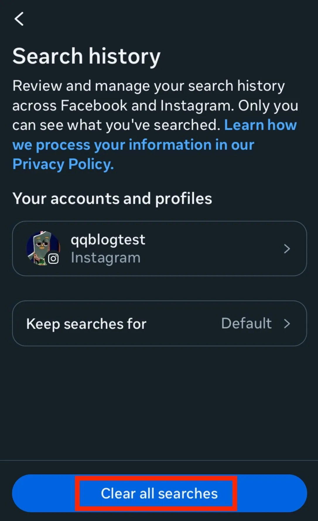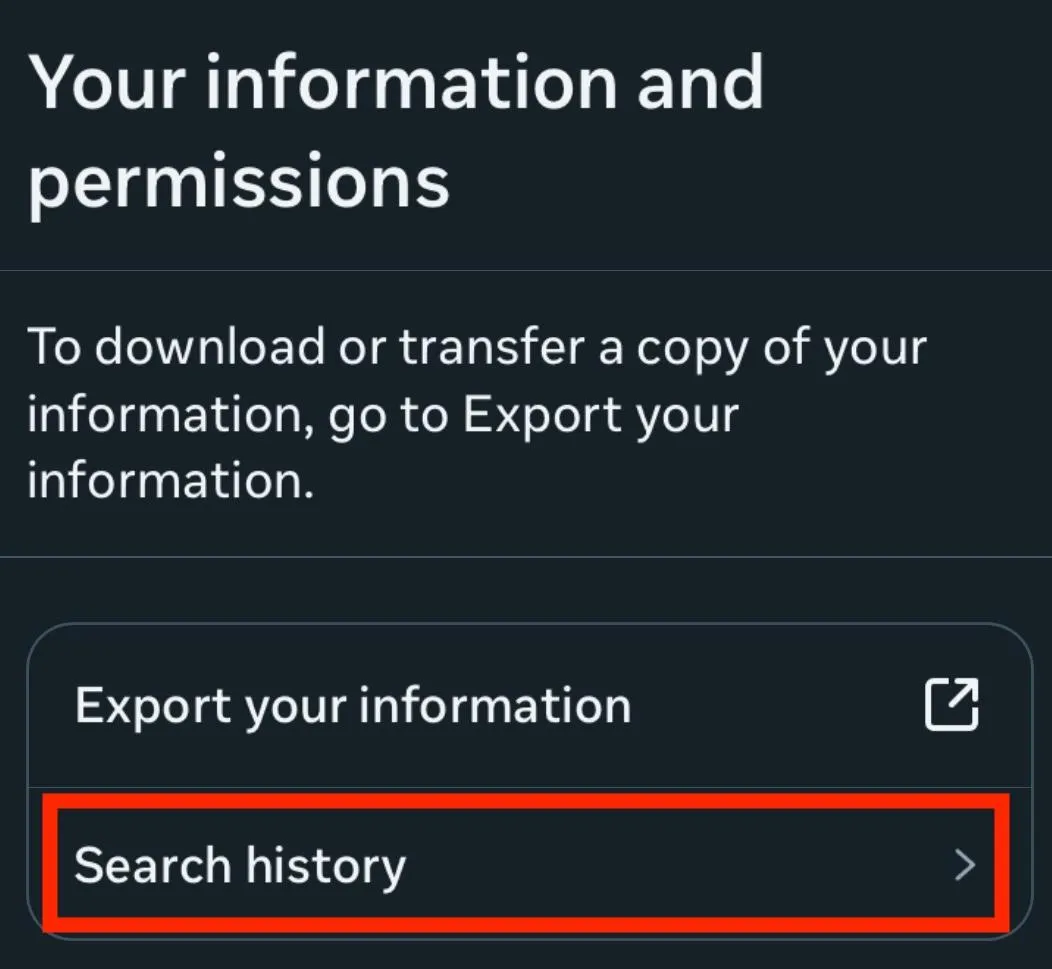 If you just want to clear your search history and leave the rest of your app data untouched, you can do so via the search bar or the Accounts Center on any device type.