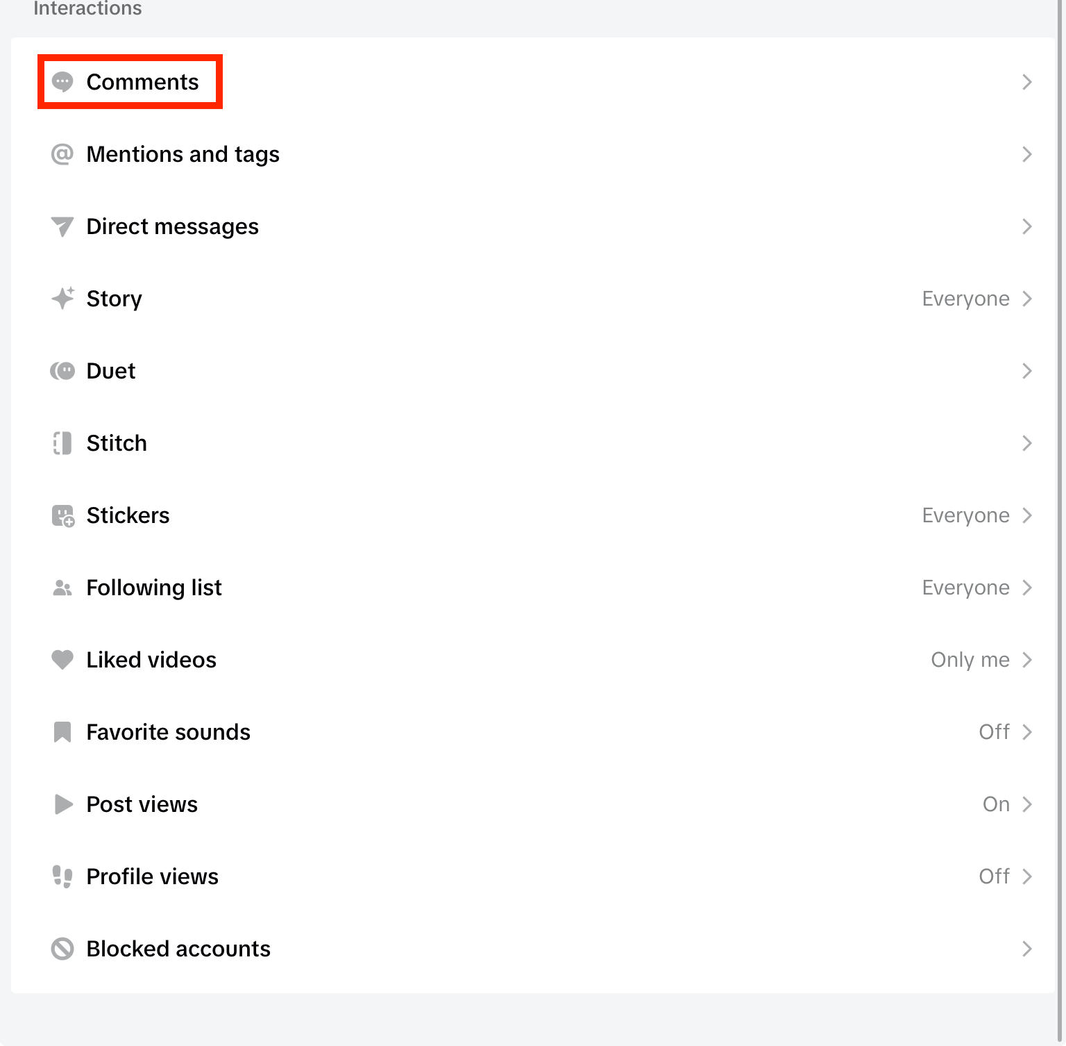 Under Interactions, tap Comments.