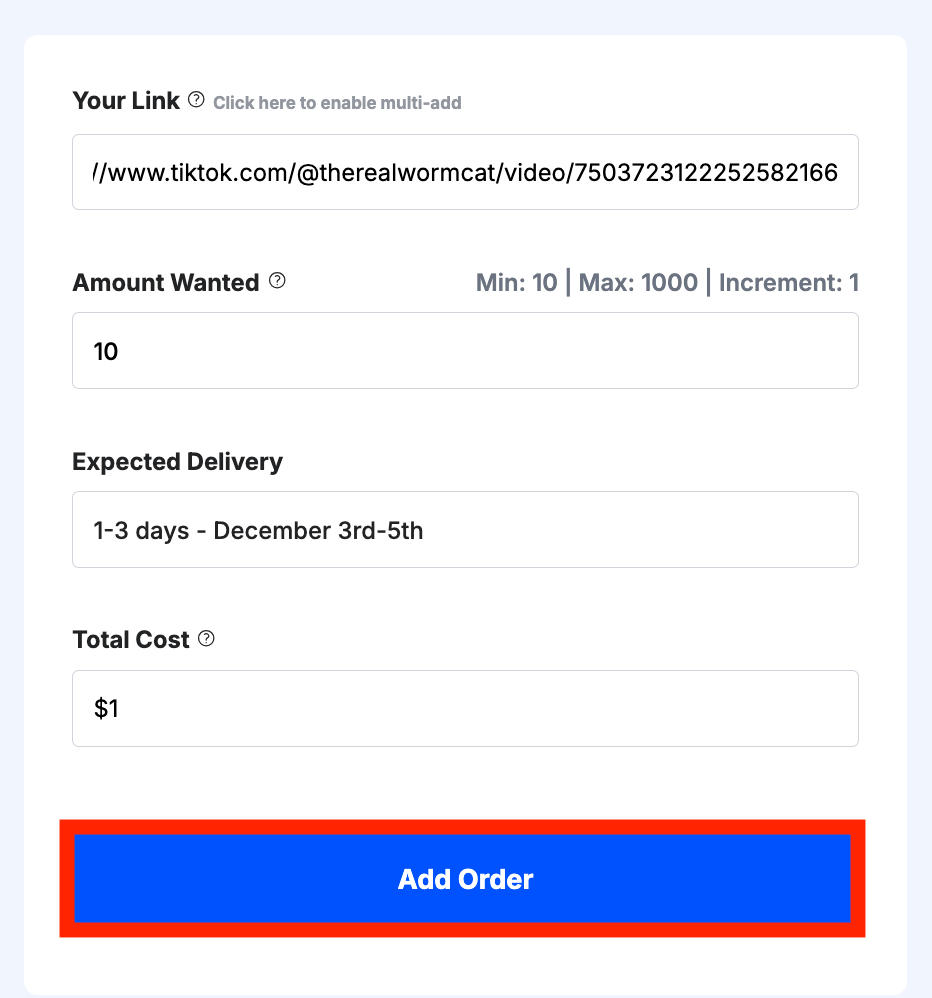 Once you’re satisfied with the order information, click Add Order.