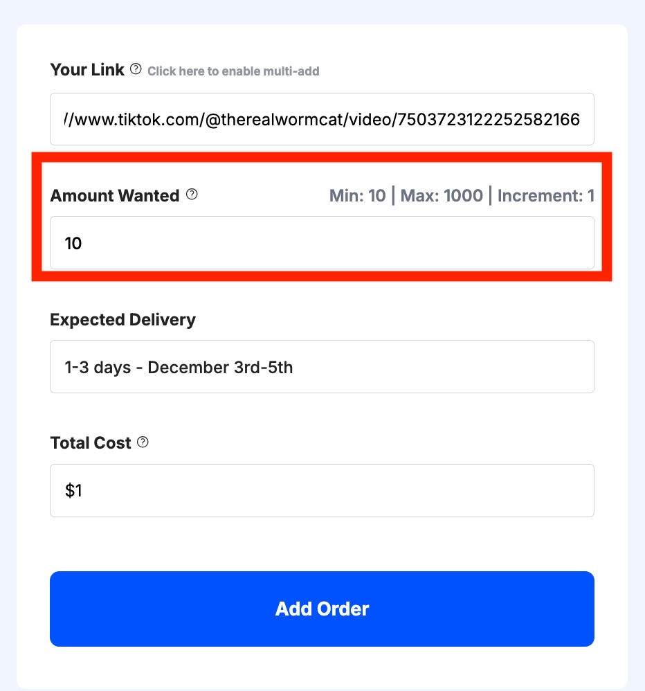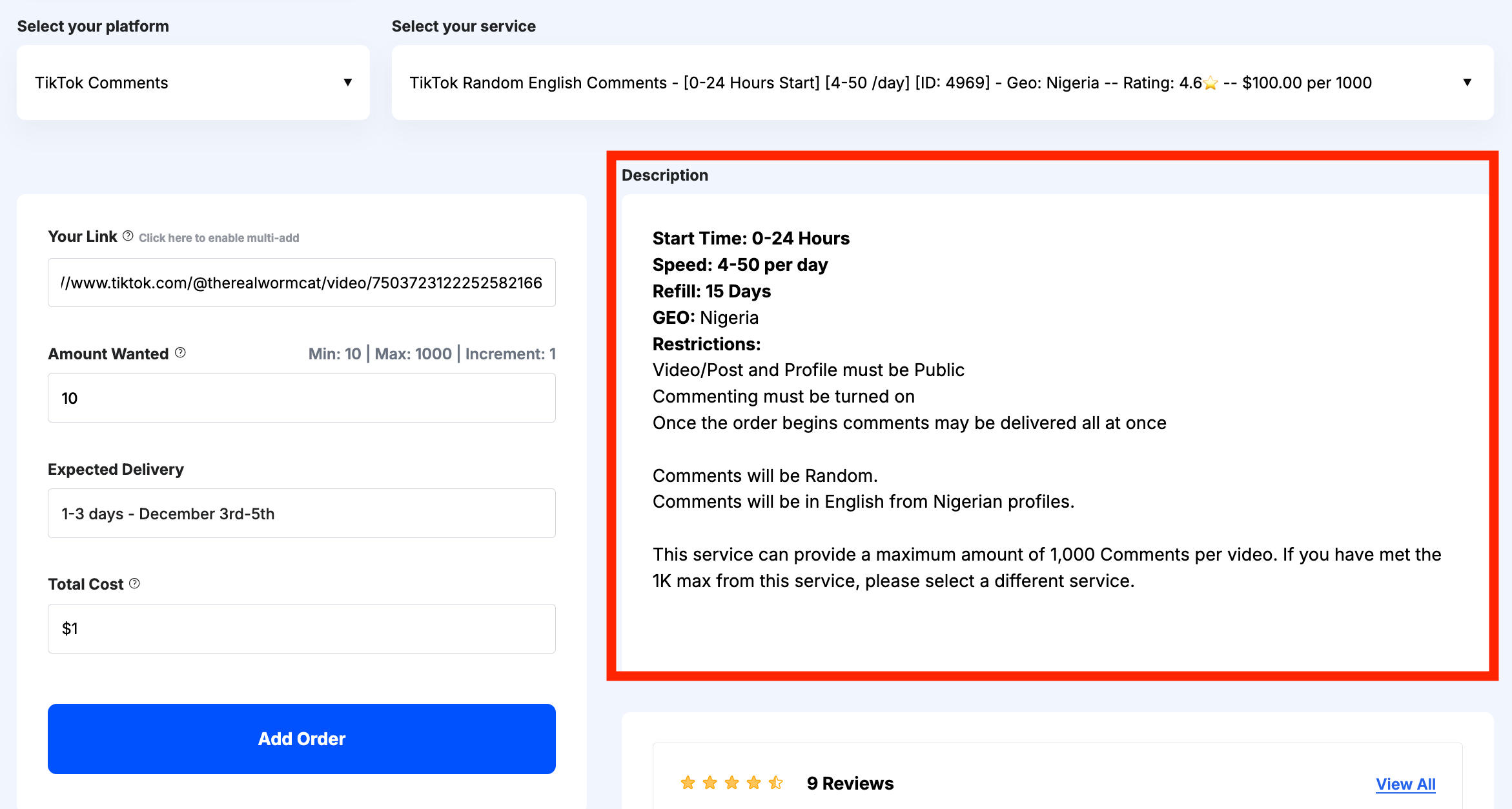 Then input the desired quantity of comments.