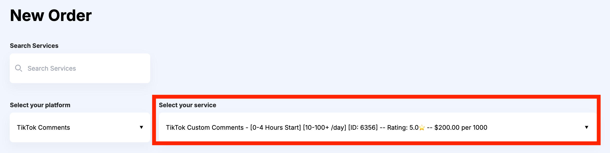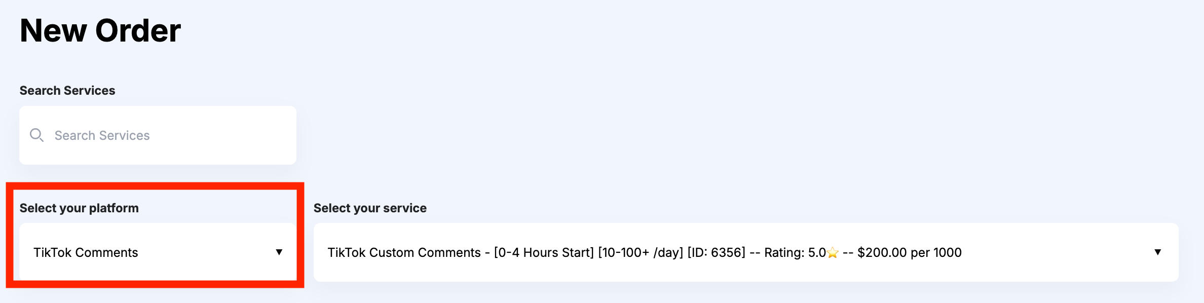 In the first drop-down menu, select TikTok Comments.