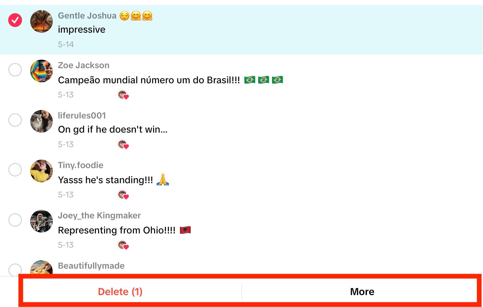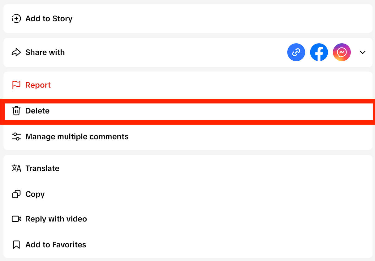 Deleting Individual TikTok Comments