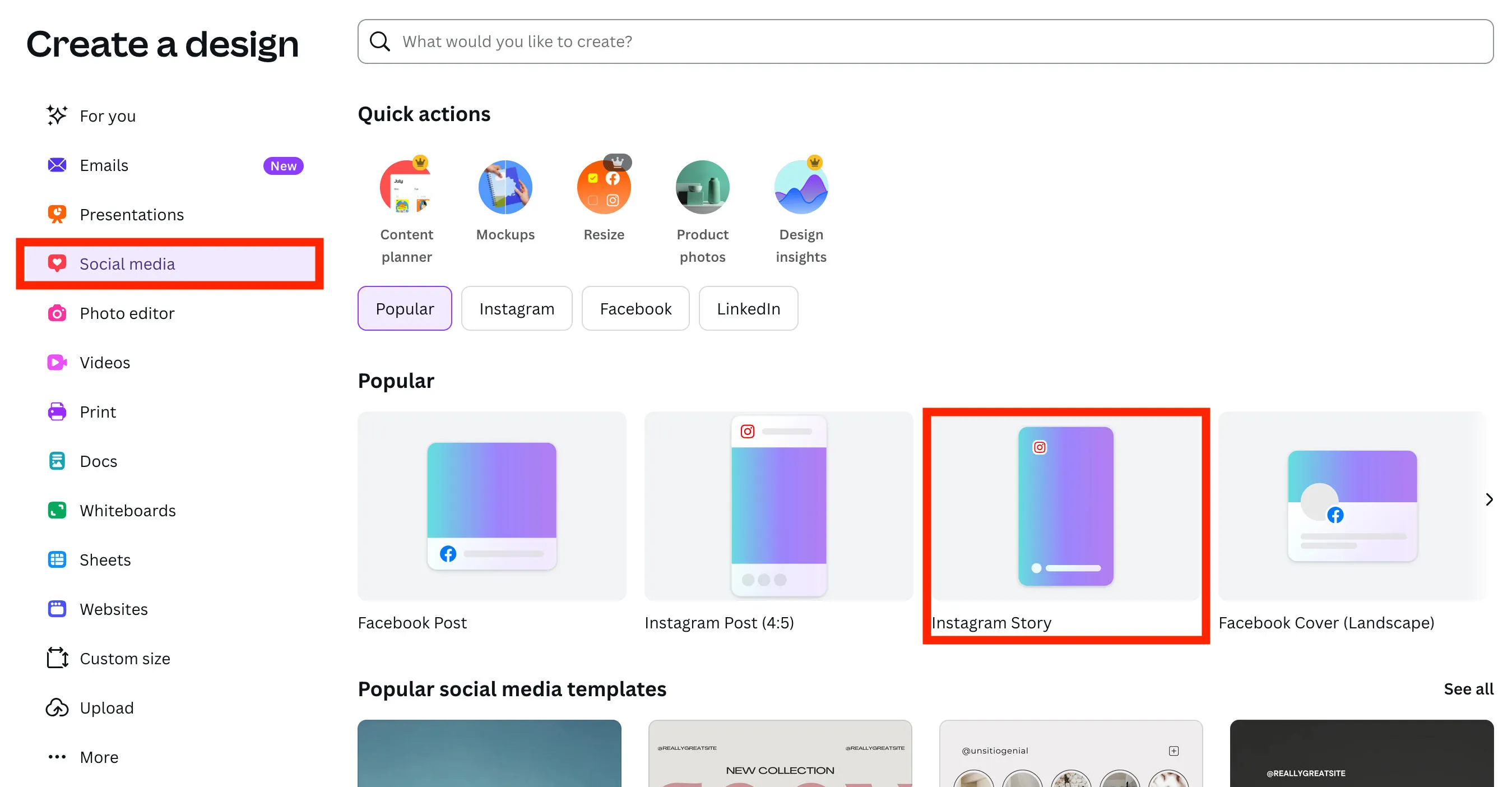 Click Social Media then click Instagram Story.