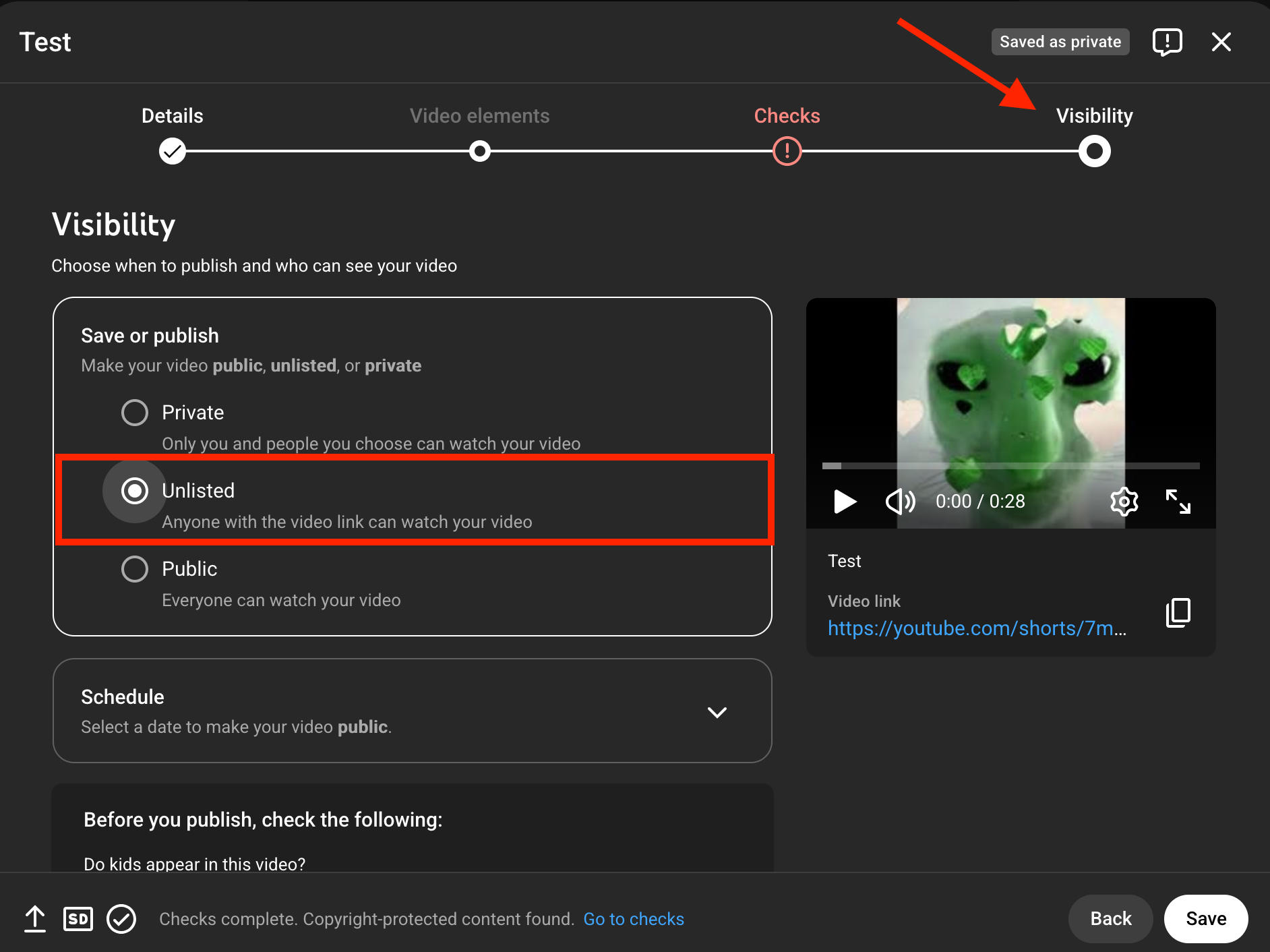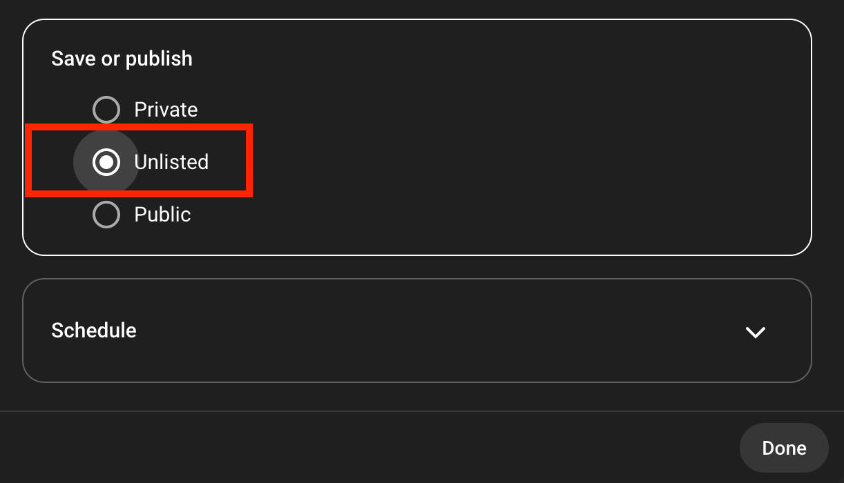 You can set a video to unlisted while you initially upload it, or after it’s already been published as either public or private.