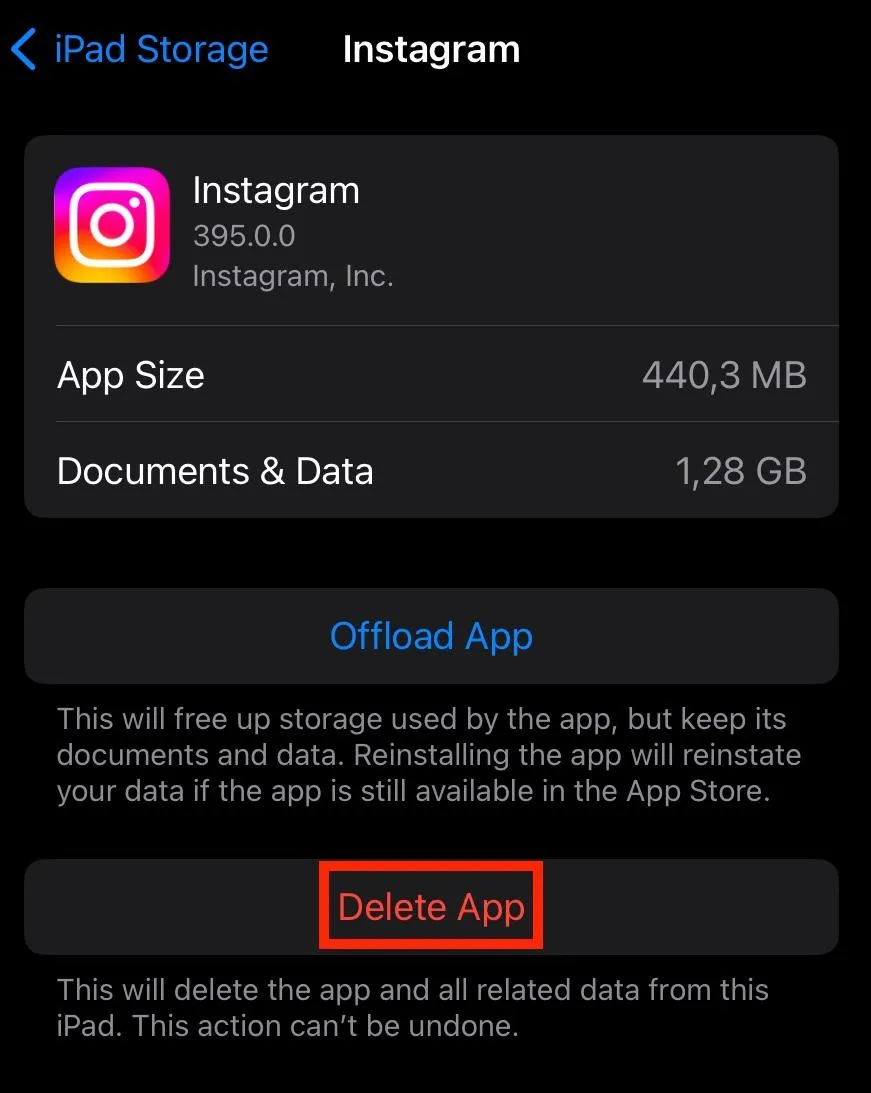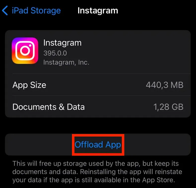 Tap either Offload/Delete App.