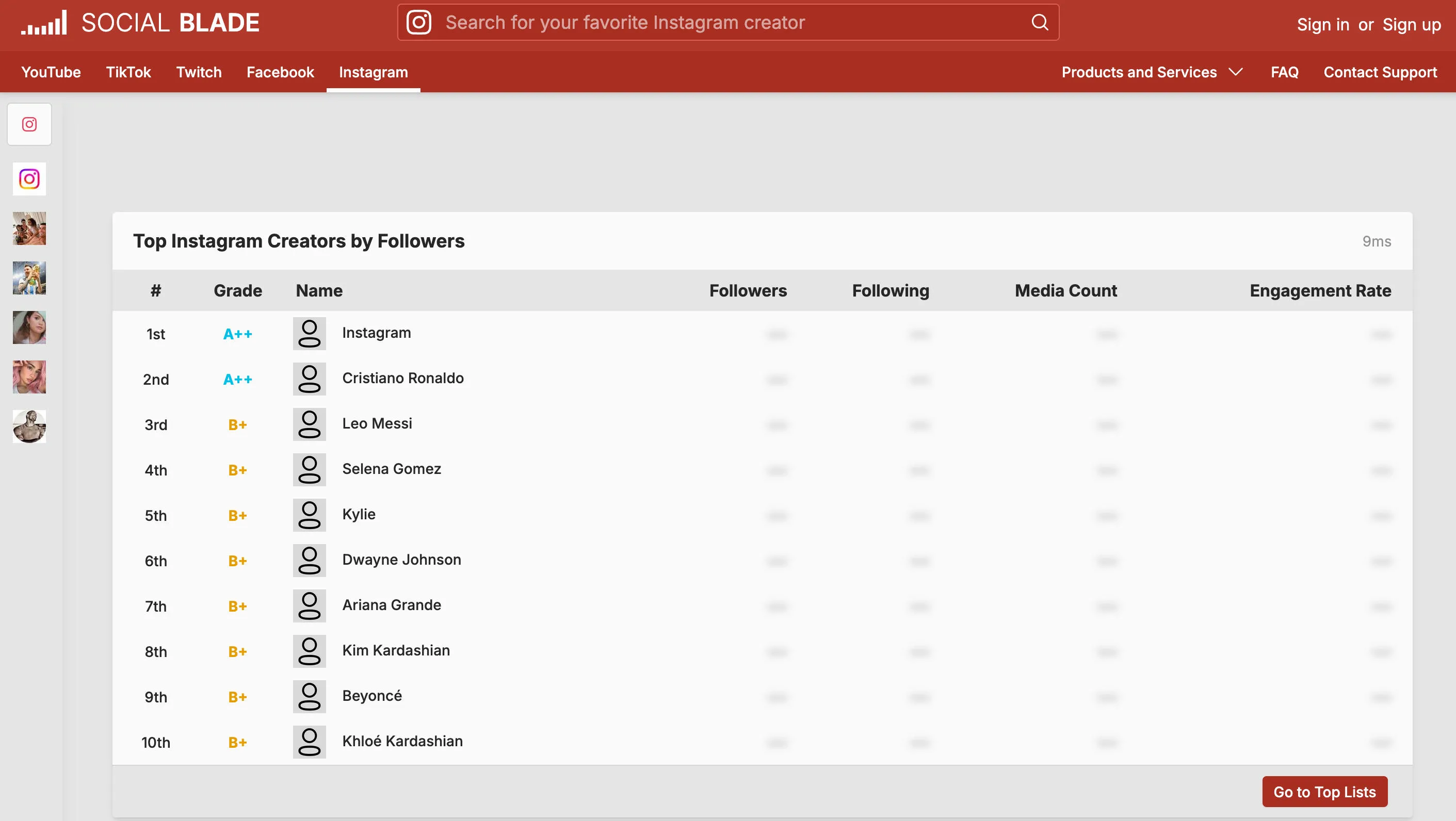 What It Does: Allows you to track a profile's follower and following account, total media count, engagement rate, average likes, and average comments. There's also a live follower account showing the daily follows and unfollows, as well as the profile’s overall rank on the platform.