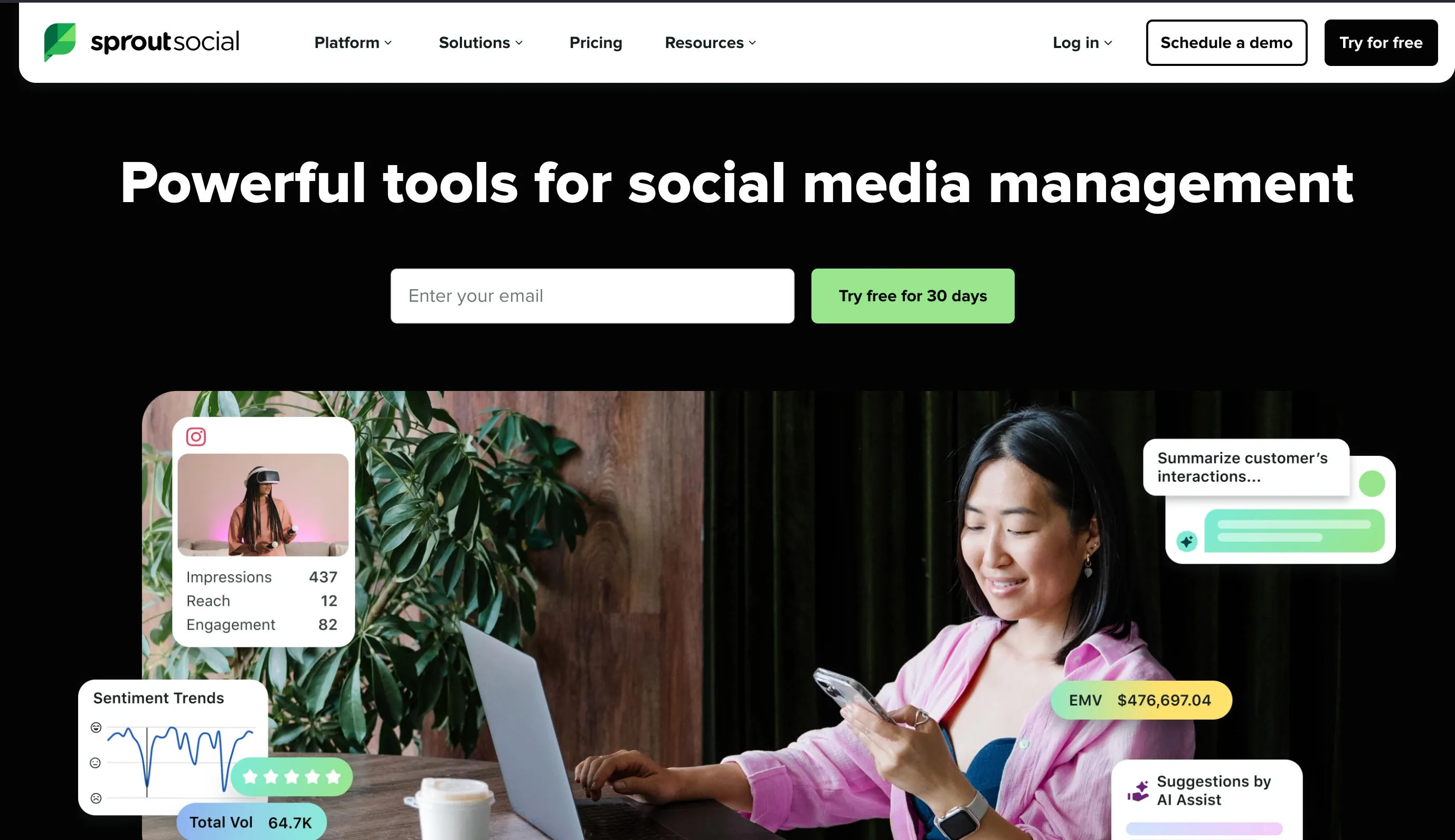 What It Does: A social media management tool that allows you to plan and schedule content, engage with people, and analyze your profiles. More powerful than just an analytics tool.