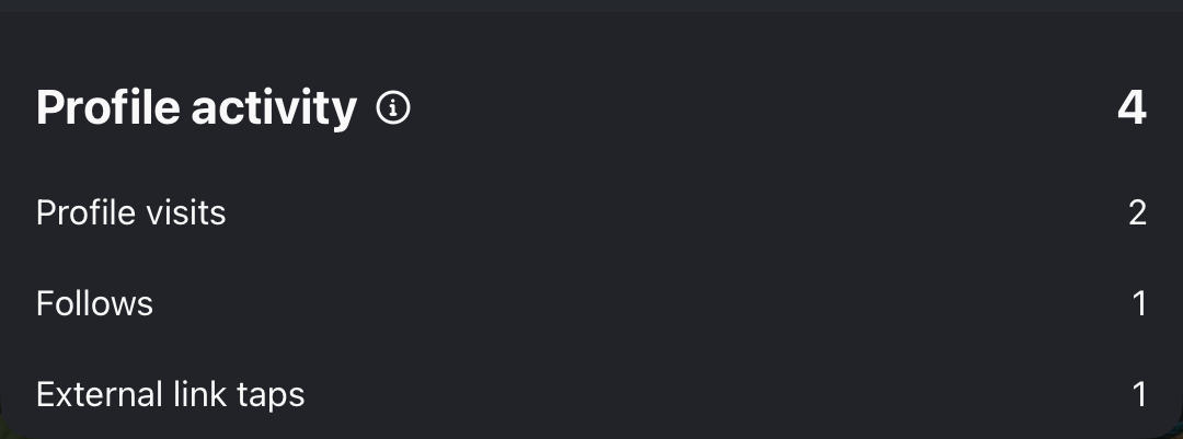 This includes views, interactions, and profile activity.