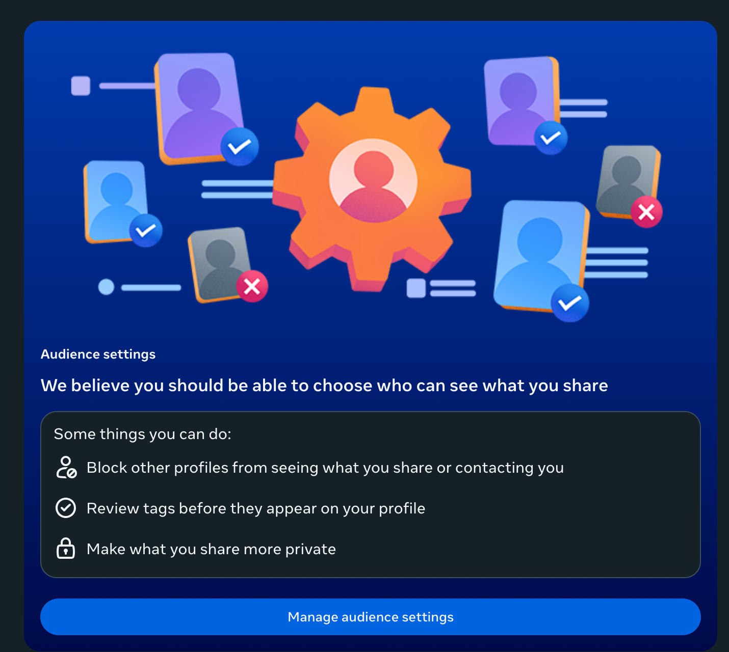 Below are a few actionable steps you can take to strengthen your Facebook privacy and keep your personal information between you and the people you trust.
