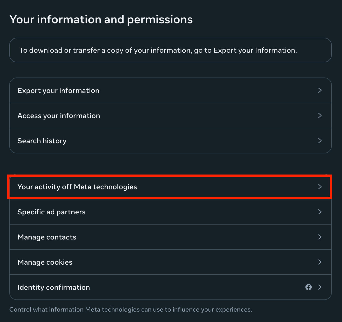 Click Your Activity Off Meta Technologies.